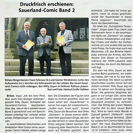 Als gelernter Grafiker begann er vor einiger Zeit, seine Ideen von einem Comic speziell auf das Sauerland projiziert, zu verwirklichen. Der Erfolg des ersten Werkes machte ihm zu dem neuen Band Mut. Wird es noch mehr Bände in Zukunft geben? "Vielleicht", verrät der fast 70-Jährige lächelnd. "Stoff für weitere fünf Comics hätte ich bereits!" Der neue Sauerland-Comic Band 2 ist im Buchhandel für EURO 12,70 erhältlich.